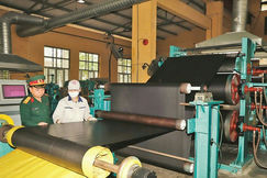 Sản xuất băng tải cao su ở Nhà máy Z175.     Ảnh: PV