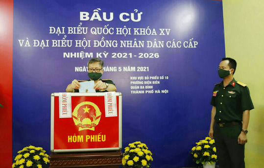 Trung tướng Trần Hồng Minh, Ủy viên Trung ương Đảng, Chủ nhiệm Tổng cục CNQP, bỏ phiếu bầu đại biểu Quốc hội khóa XV và đại biểu HĐND các cấp nhiệm kỳ 2021 -2026.