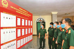 Cử tri cơ quan Tổng cục CNQP xem danh sách ứng cử viên đại biểu Quốc hội khóa XV và HĐNDcác cấp nhiệm kỳ 2021 - 2026 thuộc đơn vị bầu cử số 1.         Ảnh: THÁI ANH
