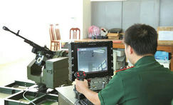 Cán bộ Viện Vũ khí nghiên cứu hiệu chỉnh giá súng.  Ảnh: PV