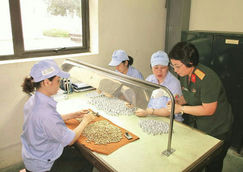 Thượng tá Nguyễn Thị Hường động viên người lao động Nhà máy Z129 tích cực lao động - sản xuất.          Ảnh: CTV