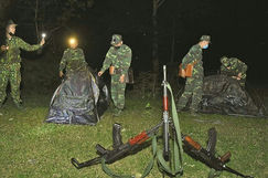 Bộ đội Biên phòng sử dụng lều quân dụng cá nhân do Nhà máy Z176 sản xuất. Ảnh: TRỌNG HẢI