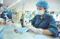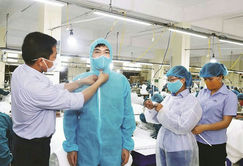 Bộ quần áo bảo hộ y tế phục vụ trong nước và xuất khẩu.     Ảnh: LÊ NAM