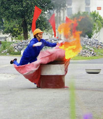 Thực hiện thao tác dập lửa bằng chăn tại Hội thao PCCN.