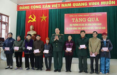 Thiếu tướng Nguyễn Việt Hùng trao quà tặng các gia đình chính sách, hộ nghèo của thị trấn Đồng Tâm, huyện Chợ Mới, tỉnh Bắc Kạn.