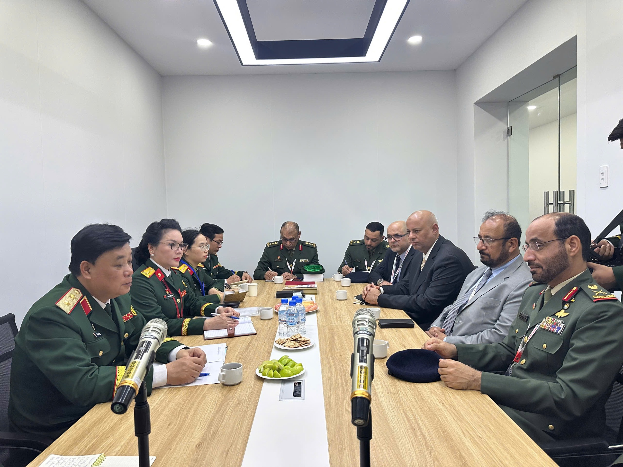 Trung tướng Hồ Quang Tuấn, Chủ nhiệm Tổng cục CNQP tiếp Thiếu tướng Mubarak Saeed Ghafan Al Jabri, Thứ trưởng Bộ Quốc phòng các Tiểu Vương quốc Ả rập Thống Nhất (UAE).