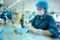 Công nhân Nhà máy Z176 (thuộc Tổng cục CNQP) may khẩu trang cung cấp cho thị trường, góp phần phòng, chống dịch Covid-19.