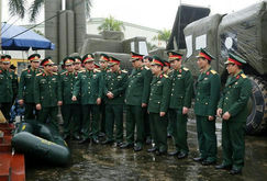 Thượng tướng Trần Đơn và đoàn công tác kiểm tra sản phẩm quốc phòng do Nhà máy Z176 nghiên cứu chế tạo.