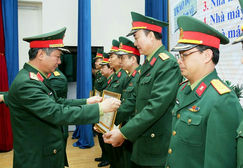 Thiếu tướng Lương Thanh Chương, Phó Chủ nhiệm Tổng cục CNQP, trao Bằng khen tặng các tập thể hoàn thành xuất sắc nhiệm vụ CTĐ, CTCT năm 2019.