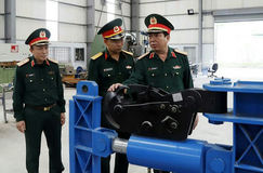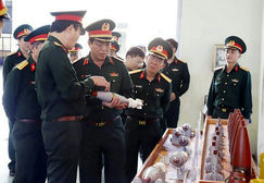 Trung tướng, TS. Trần Hồng Minh xem sản phẩm quốc phòng do Nhà máy Z115 sản xuất.