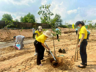 Hội viên Hội nông dân tỉnh Đồng Nai trồng cây tại khuôn viên Nhà máy Z114.