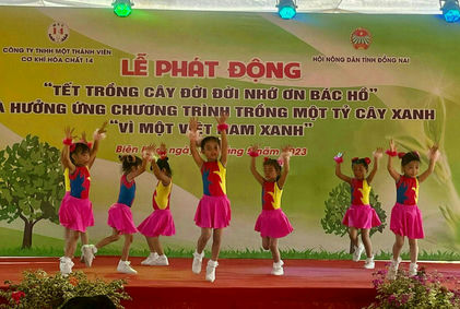 Tiết mục hát múa chào mừng Lễ phát động của các cháu Trường mầm non Hoa Mai, Nhà máy Z114.