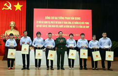 Đại tướng Phan Văn Giang trao quà tặng người lao động có hoàn cảnh khó khăn của Nhà máy Z131.