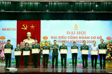 Lãnh đạo, chỉ huy Nhà máy Z181 trao Giấy khen tặng cán bộ, ĐVCĐ có thành tích xuất sắc trong phong trào công nhân và hoạt động công đoàn giai đoạn 2018 – 2023.