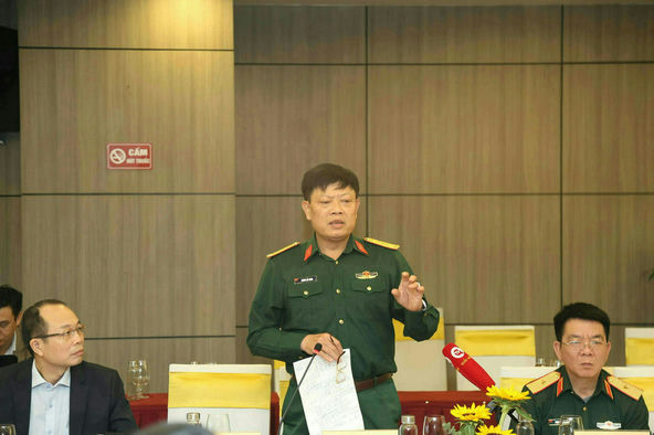 Đại tá Hoàng Hải Đăng, Trưởng phòng Động viên, Cục Quân lực, Bộ Quốc phòng phát biểu tại tọa đàm.
