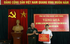 Thiếu tướng Nguyễn Việt Hùng, Phó Chính ủy Tổng cục CNQP, trao kinh phí tặng Quỹ “Vì người nghèo” của xã Đồng Thịnh (Thái Nguyên).