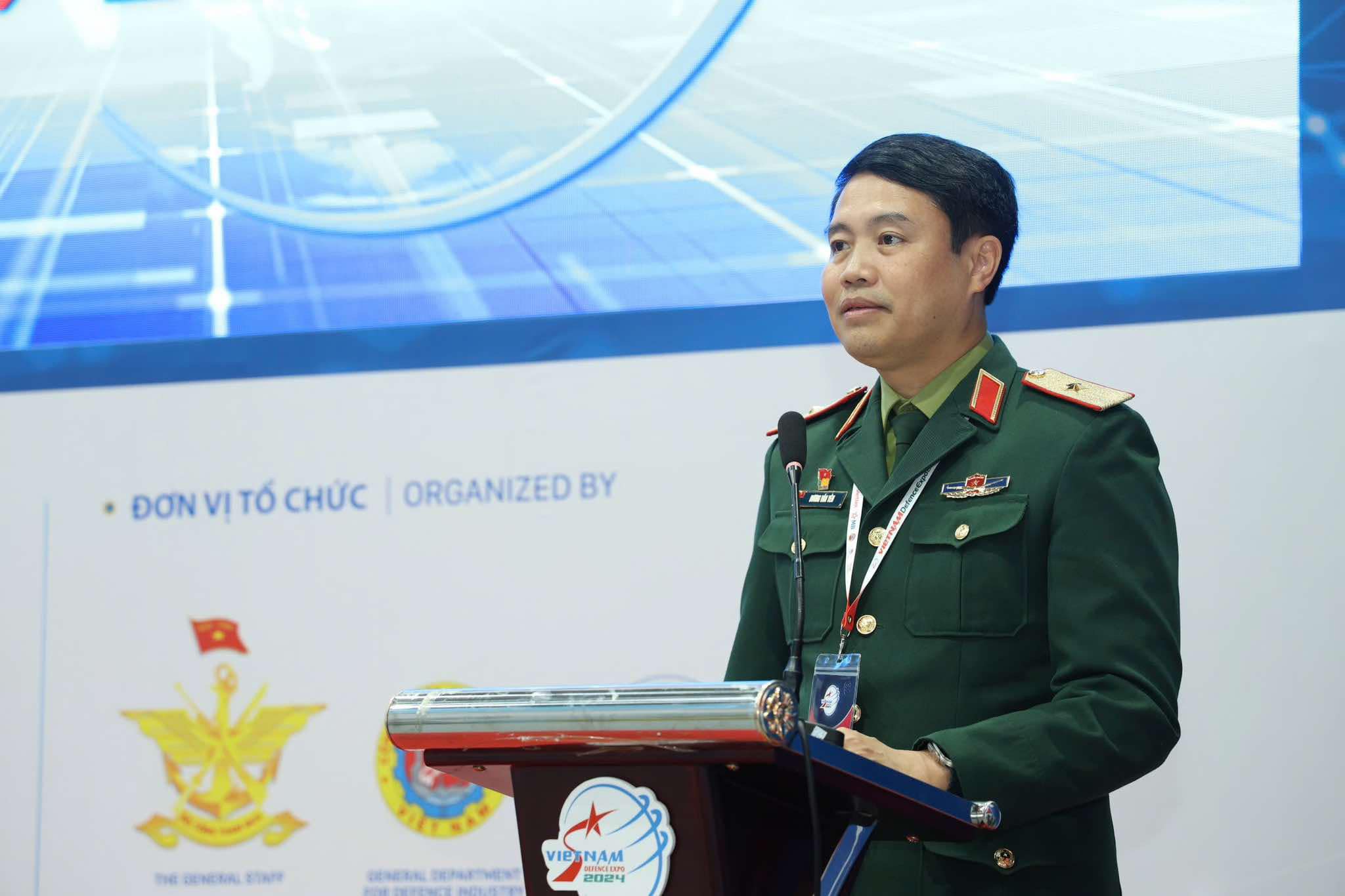 Thiếu tướng Dương Văn Yên, Phó Chủ nhiệm Tổng cục CNQP, phát biểu khai mạc hội thảo.