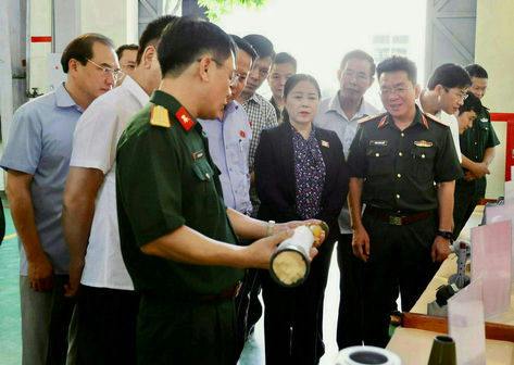 Các đại biểu tham quan hoạt động sản xuất và xem sản phẩm quốc phòng do Nhà máy Z115 chế tạo.