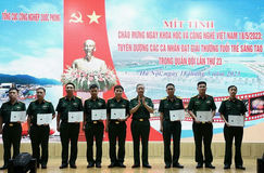 Tại buổi mít tinh, Thủ trưởng Tổng cục CNQP đã tặng hoa chúc mừng 4 viện nghiên cứu thuộc Tổng cục và 4 đồng chí được công nhận chức danh “Chuyên môn - Nghiệp vụ - Kỹ thuật” ngạch cao cấp năm 2022; trao Giấy chứng nhận chức danh “Chuyên môn - Nghiệp vụ - Kỹ thuật” năm 2022 cho 28 đồng chí được công nhận ngạch chính; trao Bằng khen và Giấy khen của Tổng cục tặng các đơn vị có thành tích xuất sắc trong công tác nghiên cứu khoa học, sáng kiến, cải tiến kỹ thuật năm 2022; tuyên dương và tặng hoa chúc mừng 2 nhóm tác giả (Viện Vũ khí và Nhà máy Z114) đạt giải Nhất; 16 tác giả, nhóm tác giả đạt giải Nhì; 15 tác giả, nhóm tác đạt giải Ba; 25 tác giả, nhóm tác giả đạt giải Khuyến khích Giải thưởng “Tuổi trẻ sáng tạo trong Quân đội” lần thứ 23.
