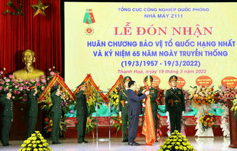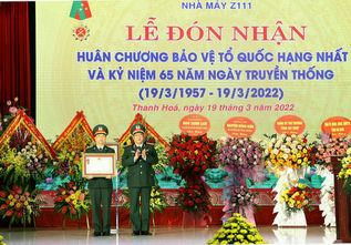 CNQP&KT - Sáng 19/3, tại Thanh Hóa, Nhà máy Z111 (thuộc Tổng cục Công nghiệp quốc phòng) đã tổ chức Lễ đón nhận Huân chương Bảo vệ Tổ quốc hạng Nhất và kỷ niệm 65 năm ngày truyền thống (19/3/1957-19/3/2022). Đồng chí Vương Đình Huệ, Ủy viên Bộ Chính trị, Chủ tịch Quốc hội, đến dự và phát biểu chỉ đạo.