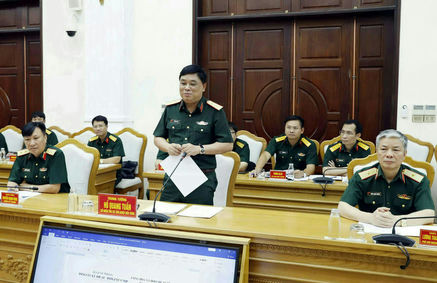 Trung tướng Trần Minh Đức, Chủ nhiệm Tổng cục Kỹ thuật, phát biểu tại hội nghị.