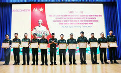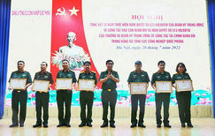 Thiếu tướng Nguyễn Đắc Hải, Phó Chủ nhiệm Tổng cục CNQP, trao Bằng khen tặng các tập thể đạt thành tích xuất sắc trong thực hiện Nghị quyết 513.