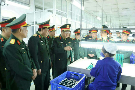 Thượng tướng Phạm Hoài Nam và đoàn công tác, kiểm tra sản phẩm quốc phòng do Nhà máy Z121 sản xuất.