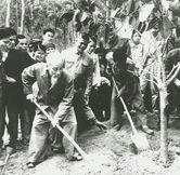 Bác Hồ tham gia trồng cây với nhân dân xã Vật Lại, huyện Ba Vì (Hà Tây cũ) mùa Xuân năm 1969 .                                 Ảnh: TL