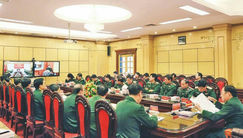 Cán bộ chủ chốt cơ quan Tổng cục CNQP tham gia Hội nghị trực tuyến học tập, quán triệt Nghị quyết Hội nghị Trung ương 6 (khóa XII), do Quân ủy Trung ương và Bộ Quốc phòng tổ chức.                  Ảnh: BẢO LÂM