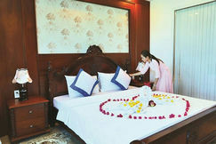 Để mọi người có những ngày thư thái nghỉ ngơi, thì những người “làm dâu trăm họ” như cán bộ, nhân viên Đoàn An điều dưỡng 298 phải nỗ lực rất nhiều. Làm du lịch đơn thuần đã khó, huống hồ dịch vụ du lịch gắn với nhiệm vụ chính trị. Theo quy định, Đoàn có nhiệm vụ trọng tâm là phục vụ an điều dưỡng cho cán bộ (nghỉ hưu và đương chức) trong toàn quân. Đồng thời, kết hợp phục vụ các đối tượng đến tham quan danh lam thắng cảnh trên địa bàn. Tuy đối tượng phục vụ có khác nhau, nhưng một tiêu chí nhất quán, được thấu suốt từ lãnh đạo, chỉ huy Đoàn cho đến từng cán bộ, nhân viên và lao động hợp đồng, đó là: “Chu đáo, tận tình, chuyên nghiệp, văn minh; vui lòng khách đến, vừa lòng khách đi”. Thượng tá Chu Quang Long, Đoàn trưởng Đoàn An điều dưỡng 298, chia sẻ: “Xác định phương châm hành động và quyết tâm thực hiện với tinh thần cao nhất, nên toàn thể cán bộ, nhân viên, người lao động , kể cả tôi và đồng chí Chính trị viên luôn trong tâm thế sẵn sàng phục vụ mọi người đến với Đoàn”. Tôi biết, sự chu đáo này không chỉ là lời nói mà đã được thể hiện bằng hành động cụ thể khi từ lễ tân đón tiếp đến bộ phận buồng phòng rồi bếp ăn đều tinh tế quan tâm đáp ứng yêu cầu của mọi đối tượng. Thái độ phục vụ tận tình này là kết quả của quá trình huấn luyện, đào tạo và cả… sự nêu gương của lãnh đạo, chỉ huy Đoàn. Thế nên hình ảnh Đoàn trưởng Chu Quang Long, Chính trị viên Trần Kim Phụng niềm nở đón khách đã trở nên quen thuộc với cán bộ, nhân viên Đoàn 298. Thậm chí, sự sâu sát bám nắm còn thể hiện bằng việc mọi người nhận tin báo cây chỗ này héo, điện chỗ kia tắt từ chính… Đoàn trưởng của mình!
