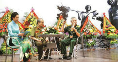 Đại tá, TS. Đào Quang Nghiêm và Trung tá, kỹ sư Nguyễn Phúc Môn (giữa) - nhân chứng lịch sử kể về cuộc đấu trí với máy bay Mỹ trên tuyến xăng dầu - Đường ống Trường Sơn.         Ảnh: CTV