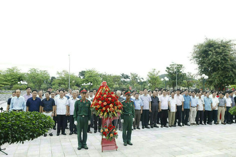 Các đại biểu và cựu học viên dâng hương, dâng hoa tưởng nhớ Chủ tịch Hồ Chí Minh, Đại tướng Võ Nguyên Giáp và các Anh hùng Liệt sỹ tại Nhà tưởng niệm của Trường Sỹ quan Chính trị.