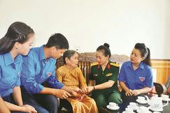 Đoàn viên, thanh niên Nhà máy Z183 thăm hỏi, động viên Mẹ Việt Nam Anh hùng.  Ảnh: CTV