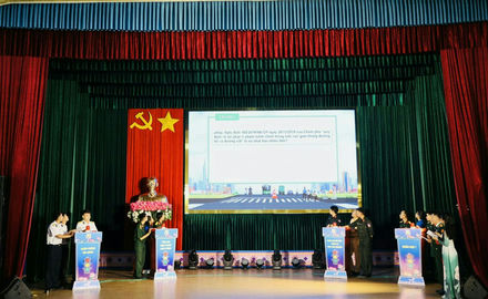 Phần thi hùng biện của đội Tổng cục CNQP.
