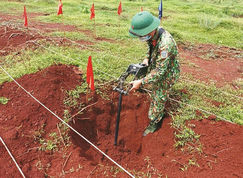 Lực lượng của Tổng công ty Xây dựng Lũng Lô rà phá bom, mìn, vật nổ tại Dự án Cảng Hàng không quốc tế Long Thành (Đồng Nai).         Ảnh: CTV