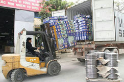 Nhà máy Z117 (thuộc Tổng cục CNQP) thực hiện tốt nhiệm vụ sản xuất quốc phòng và kinh tế. (Trong ảnh: Chuyển hàng kinh tế lên container phục vụ xuất khẩu). Ảnh: CTV