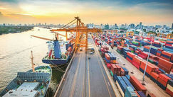 Hoạt động khai thác cảng biển tại Tổng công ty Tân Cảng Sài Gòn (Quân chủng Hải quân).             Ảnh: CTV