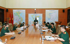 Trung tướng Huỳnh Chiến Thắng, Ủy viên Trung ương Đảng, Phó Tổng Tham mưu trưởng, chủ trì hội nghị.