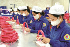 Công nhân Nhà máy Z121 luôn chấp hành nghiêm quy định mang mặc bảo hộ lao động trong quá trình sản xuất. Trong ảnh: Kiểm chọn dây dẫn tín hiệu nổ.  Ảnh: CTV