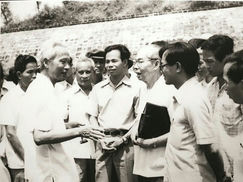Thủ tướng Phạm Văn Đồng và Giáo sư, Viện sĩ Trần Đại Nghĩa tại một hội nghị khoa học thời chống Mỹ. Ảnh: TL