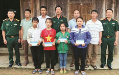 Đoàn KT - QP 4 trao học bổng cho các em học sinh nghèo vượt khó. Ảnh: CTV