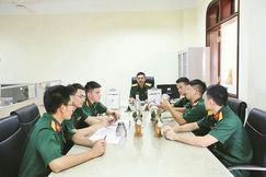 Cán bộ, kỹ sư trẻ của Nhà máy Z131 trao đổi phương pháp nghiên cứu phát triển sản phẩm mới.     Ảnh: LÂM MINH