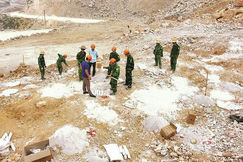 Công nhân Công ty Vật liệu nổ công nghiệp (Tổng công ty GAET) thực hiện dịch vụ nổ mìn trọn gói.     Ảnh: CTV