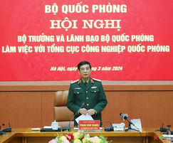 CNQP&KT - Sáng 4/3, Đại tướng Phan Văn Giang, Ủy viên Bộ Chính trị, Phó bí thư Quân ủy Trung ương, Bộ trưởng Bộ Quốc phòng chủ trì buổi làm việc của lãnh đạo Bộ Quốc phòng với Tổng cục Công nghiệp quốc phòng (CNQP) về triển khai nhiệm vụ trọng tâm năm 2024 của Tổng cục.