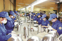 Sản xuất bát inox xuất khẩu ở Nhà máy Z117.            Ảnh: TUẤN MINH