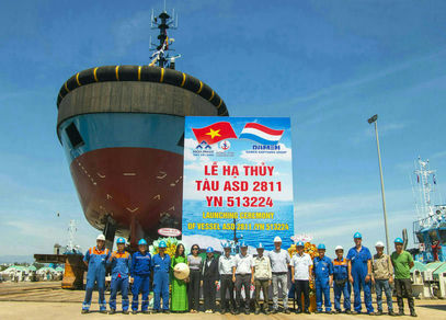 Đại diện Tổng công ty Sông Thu, Tập đoàn Damen và Tập đoàn Hòa Phát tại Lễ hạ thủy tàu ASD2811.