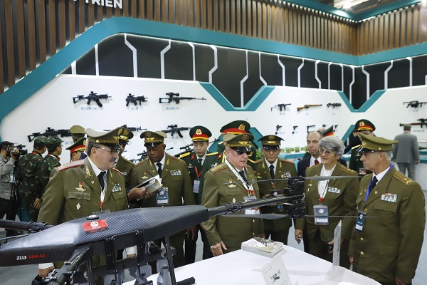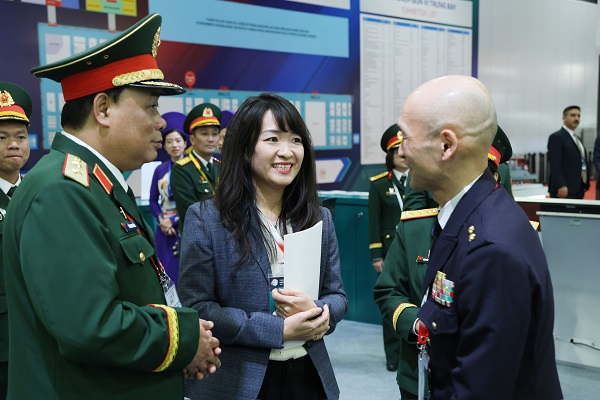 Đại biểu quân đội các nước xem sản phẩm do CNQP Việt Nam sản xuất.